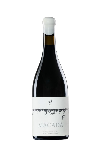 El Macada presenta un color rubí con matices morados de capa alta. Aspecto brillante y una lágrima intensa y persistente.